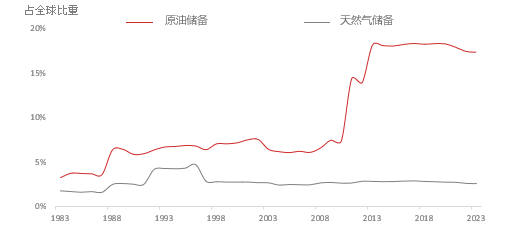 图3:委内瑞拉原油和天然气储备占全球比重%