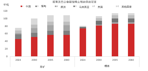 注:开采和提炼数据仅针对磁性稀土元素(钕、镨、镝、铽)。