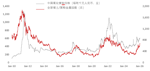结构性缺口。由于稀土市场中期内可能出现结构性供应短缺,稀土价格预计将上升。BMI金属与矿业研究公司预测,用于制造永久磁铁的关键稀土原料之一的氧化镨钕(NdPr)的价格将从2025年每吨约6.7万美元上升至2029年的9万美元。因此,星展集团认为,稀土具有引人注目的投资前景,主要受惠于供应受限、战略紧迫性日益增强以及稀土在塑造未来全球秩序的技术中发挥不可替代的作用。