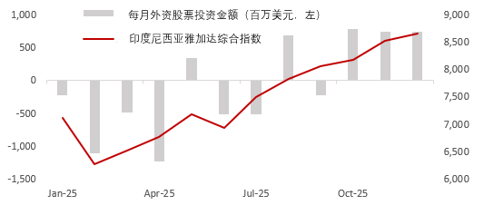 图2: 2025年下半年外资恢复流入支持印度尼西亚股市2025年的表现