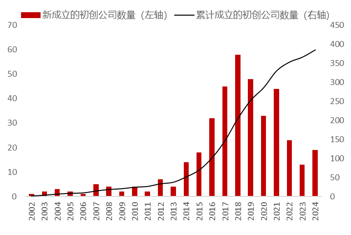 图3:关于量子计算初创企业的热度有所降温(2002-2024年)