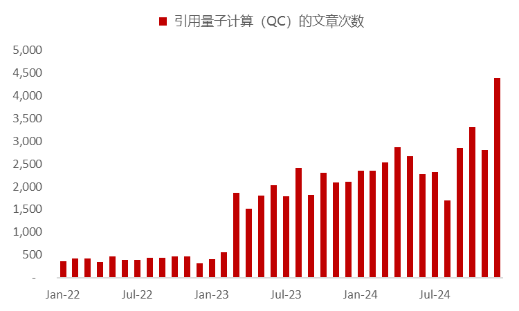 图5:…尽管公司档案中引用量子计算(QC)的次数有所增加(2022年1月至2024年12月)